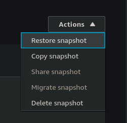 "DBClusterSnapshotArn": "arn:aws:rds:us-east-1:104506445608:cluster-snapshot:orders-private",